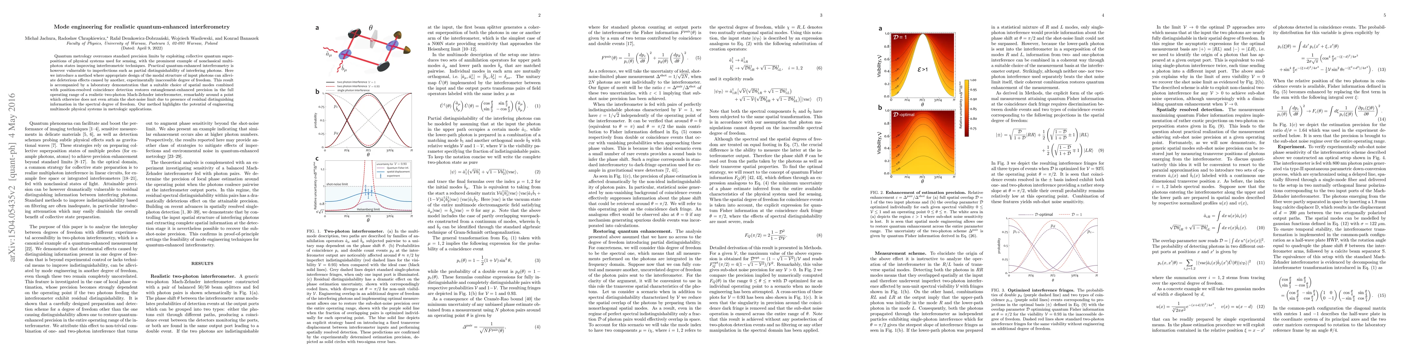 Quantum metrology overcomes standard precision limits by exploiting collective quantum superpositions of physical systems used for sensing, with the prominent example of non-classical multiphoton states improving interferometric techniques. Practical quantum-enhanced interferometry is, however, vulnerable to imperfections such as partial distinguishability of interfering photons. Here we introduce a method where appropriate design of the modal structure of input photons can alleviate deleterious effects caused by another, experimentally inaccessible degree of freedom. This result is accompanied by a laboratory demonstration that a suitable choice of spatial modes combined with position-resolved coincidence detection restores entanglement-enhanced precision in the full operating range of a realistic two-photon Mach-Zehnder interferometer, specifically around a point which otherwise does not even attain the shot-noise limit due to the presence of residual distinguishing information in the spectral degree of freedom. Our method highlights the potential of engineering multimode physical systems in metrologic applications.