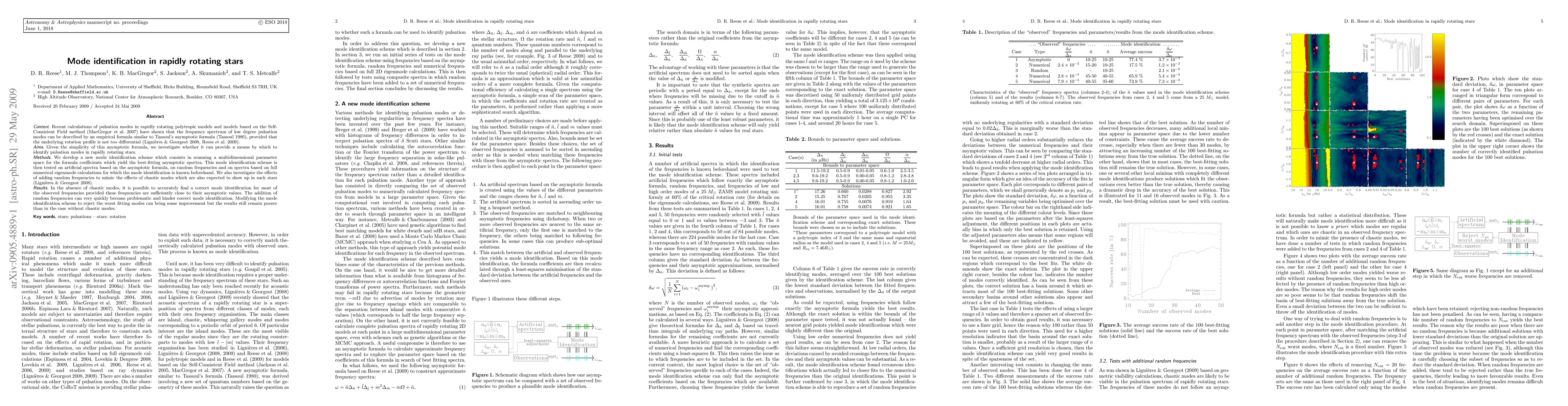 This paper develops a new mode identification scheme to determine pulsation modes in rapidly rotating stars by fitting an empirical formula to their frequency spectra. The scheme is tested on artificial and numerical spectra, and it accounts for the addition of random frequencies to simulate chaotic modes.