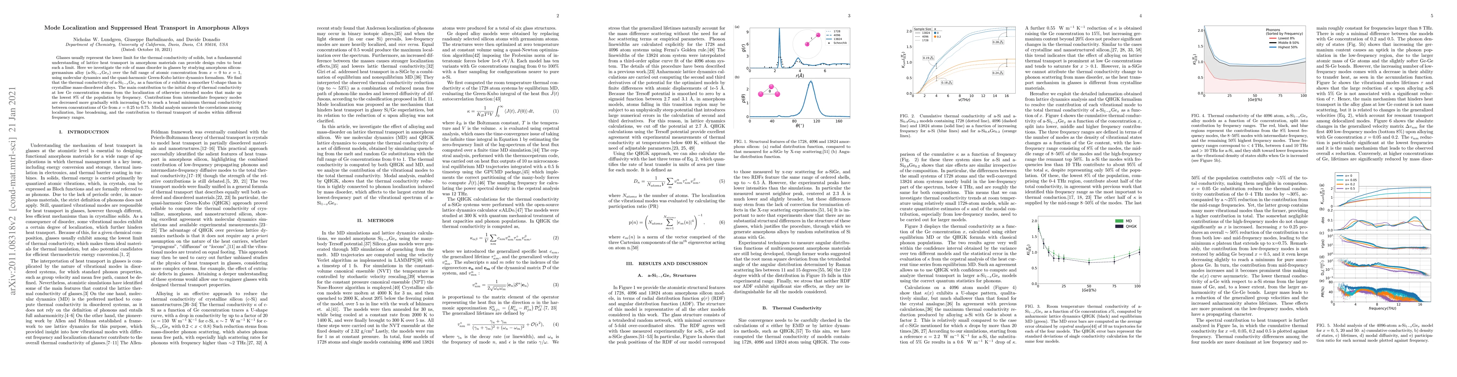 Researchers studied amorphous silicon-germanium alloys to understand how mass disorder affects thermal conductivity, finding a smoother U-shape in thermal conductivity versus concentration compared to crystalline materials.
