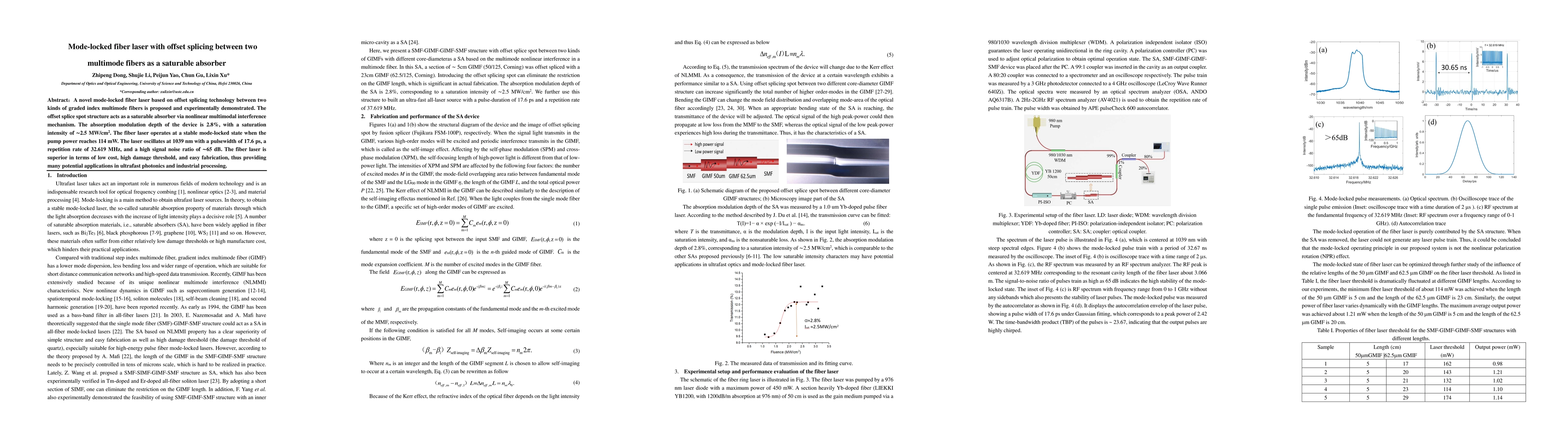 This paper proposes and demonstrates a cost-effective mode-locked fiber laser using offset splicing between multimode fibers as a saturable absorber, achieving stable operation at 1039 nm with 17.6 ps pulsewidth and 32.619 MHz repetition rate, highlighting its potential for ultrafast photonics and industrial applications.