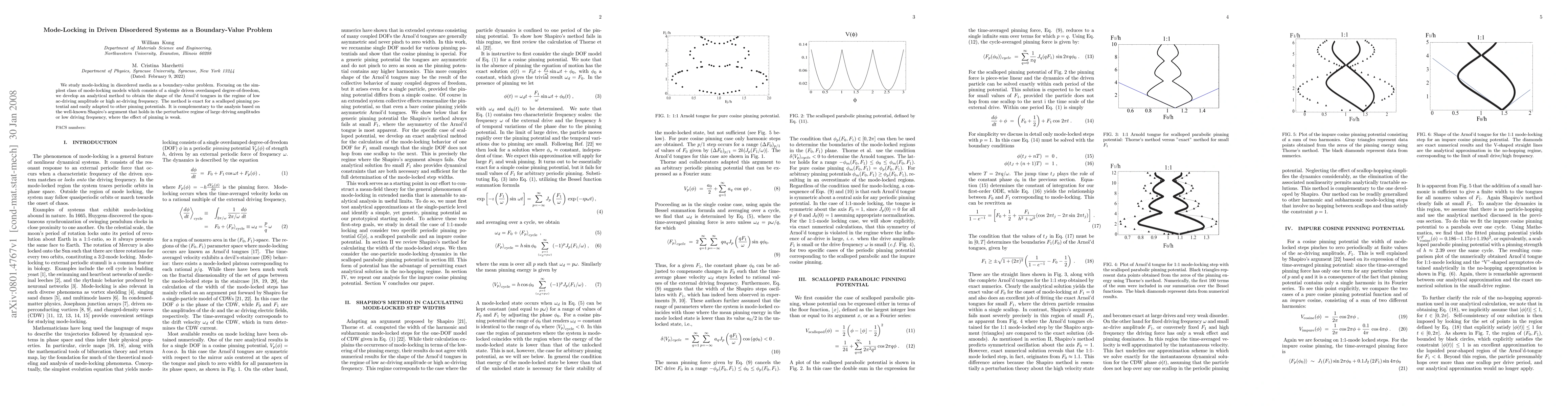 We study mode-locking in disordered media as a boundary-value problem. Focusing on the simplest class of mode-locking models which consists of a single driven overdamped degree-of-freedom, we develop an analytical method to obtain the shape of the Arnol'd tongues in the regime of low ac-driving amplitude or high ac-driving frequency. The method is exact for a scalloped pinning potential and easily adapted to other pinning potentials. It is complementary to the analysis based on the well-known Shapiro's argument that holds in the perturbative regime of large driving amplitudes or low driving frequency, where the effect of pinning is weak.