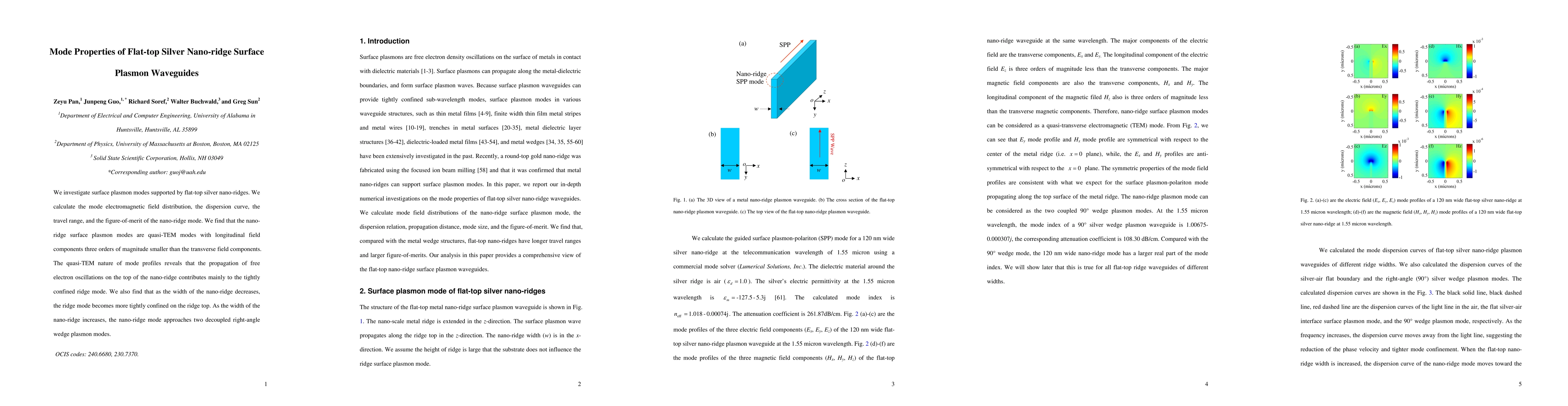 This study examines surface plasmon modes in flat-top silver nano-ridges, revealing quasi-TEM modes with tightly confined electromagnetic fields. The research shows that decreasing nano-ridge width enhances mode confinement, while increasing width leads to a transition towards decoupled wedge plasmon modes.