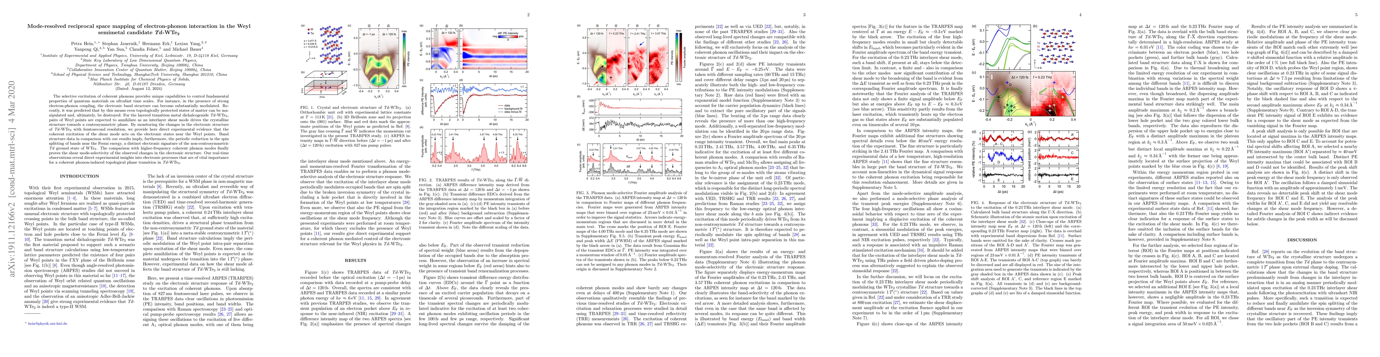 This research presents experimental evidence that coherent excitation of a shear mode in Td-WTe$_2$ affects electronic states near Weyl points, providing direct insight into potential phonon-induced topological phase transitions in this Weyl semimetal candidate.