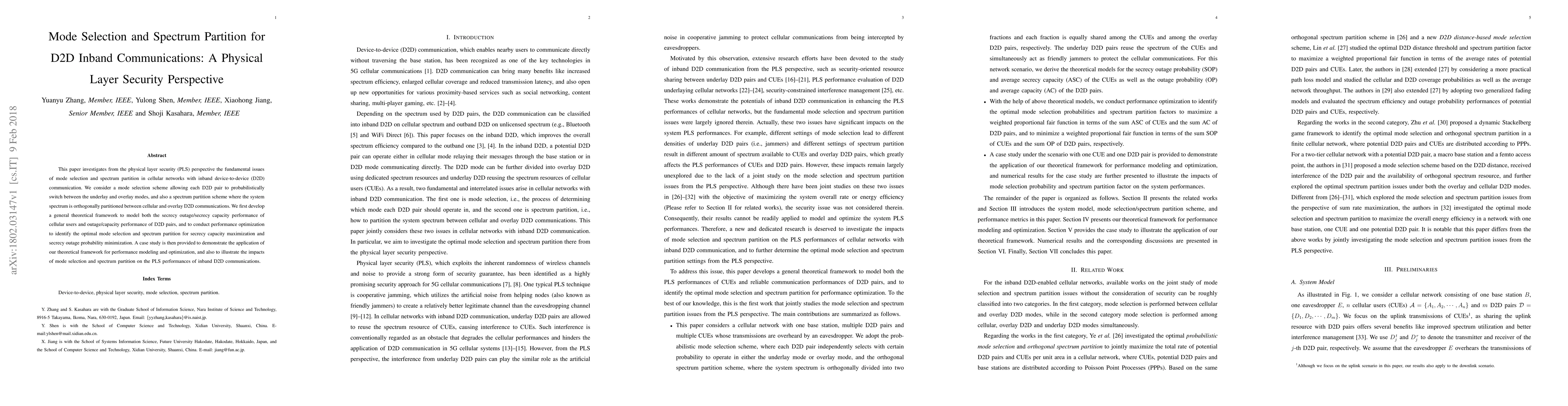 The paper introduces a theoretical framework for analyzing and optimizing mode selection and spectrum partition in cellular networks with D2D communication from a PLS perspective.