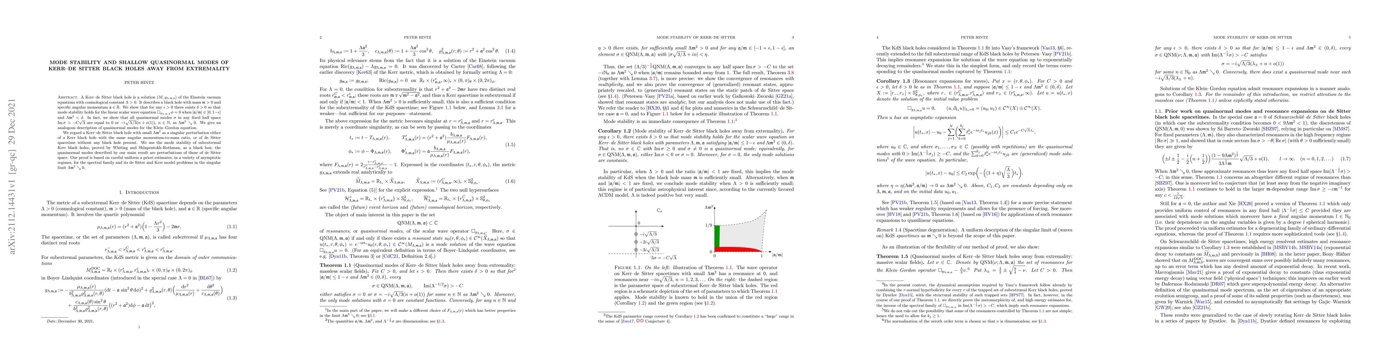 This paper investigates the mode stability and quasinormal modes of Kerr-de Sitter black holes, demonstrating that for small cosmological constant times mass, the quasinormal modes converge to those of de Sitter space. The study uses uniform a priori estimates to show stability and describe the quasinormal modes in various asymptotic regimes.