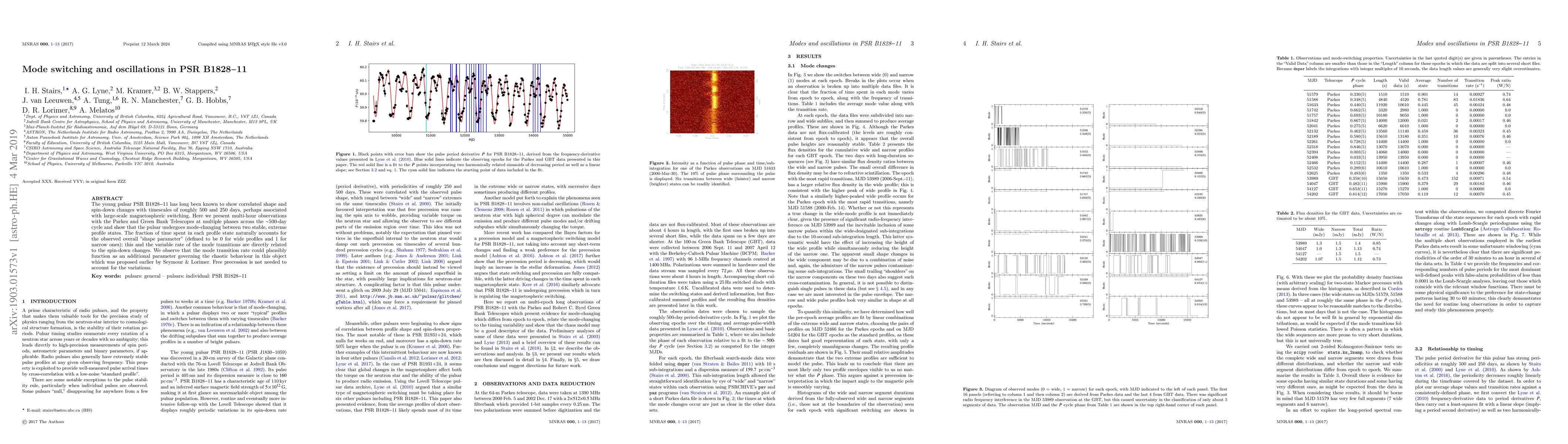 The young pulsar PSR B1828-11 has long been known to show correlated shape and spin-down changes with timescales of roughly 500 and 250 days, perhaps associated with large-scale magnetospheric switching. Here we present multi-hour observations with the Parkes and Green Bank Telescopes at multiple phases across the roughly 500-day cycle and show that the pulsar undergoes mode-changing between two stable, extreme profile states. The fraction of time spent in each profile state naturally accounts for the observed overall "shape parameter" (defined to be 0 for wide profiles and 1 for narrow ones); this and the variable rate of the mode transitions are directly related to the spin-down changes. We observe that the mode transition rate could plausibly function as an additional parameter governing the chaotic behaviour in this object which was proposed earlier by Seymour and Lorimer. Free precession is not needed to account for the variations.