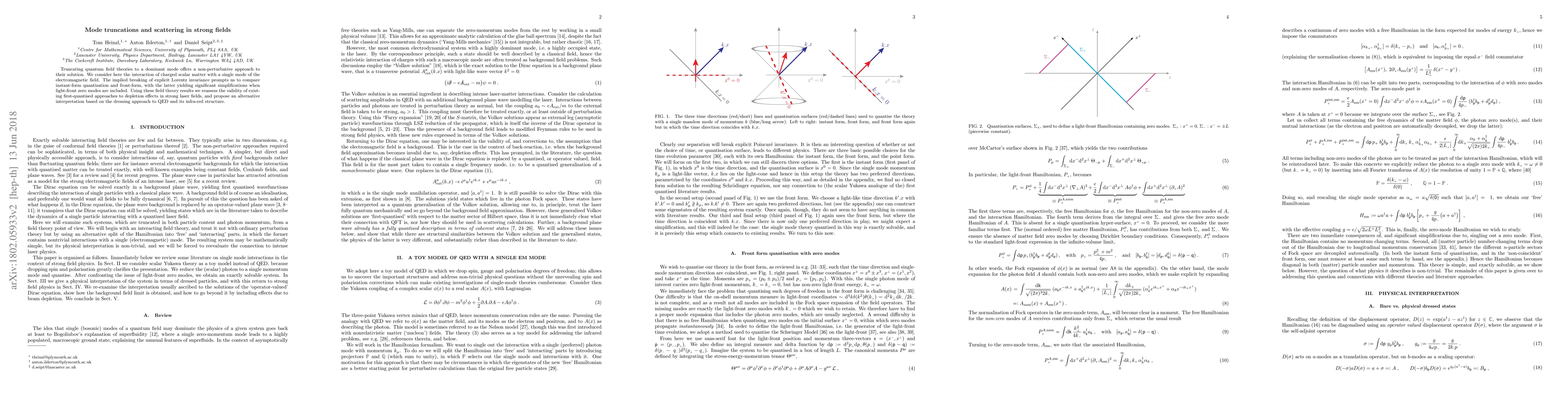 Truncating quantum field theories to a dominant mode offers a non-perturbative approach to their solution. We consider here the interaction of charged scalar matter with a single mode of the electromagnetic field. The implied breaking of explicit Lorentz invariance prompts us to compare instant-form quantisation and front-form, with the latter yielding significant simplifications when light-front zero modes are included. Using these field theory results we reassess the validity of existing first-quantised approaches to depletion effects in strong laser fields, and propose an alternative interpretation based on the dressing approach to QED and its infra-red structure.