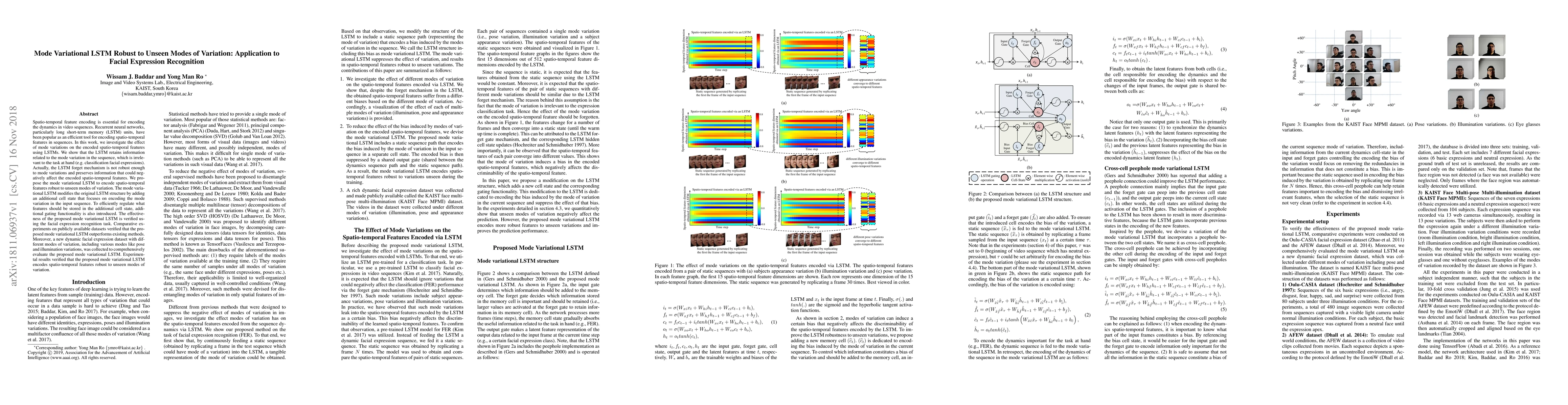 This paper proposes a mode variational LSTM to encode spatio-temporal features robust to unseen modes of variation, addressing the limitations of standard LSTMs in handling irrelevant mode variations. The method outperforms existing methods in facial expression recognition, as verified by experiments on both standard and newly collected datasets.