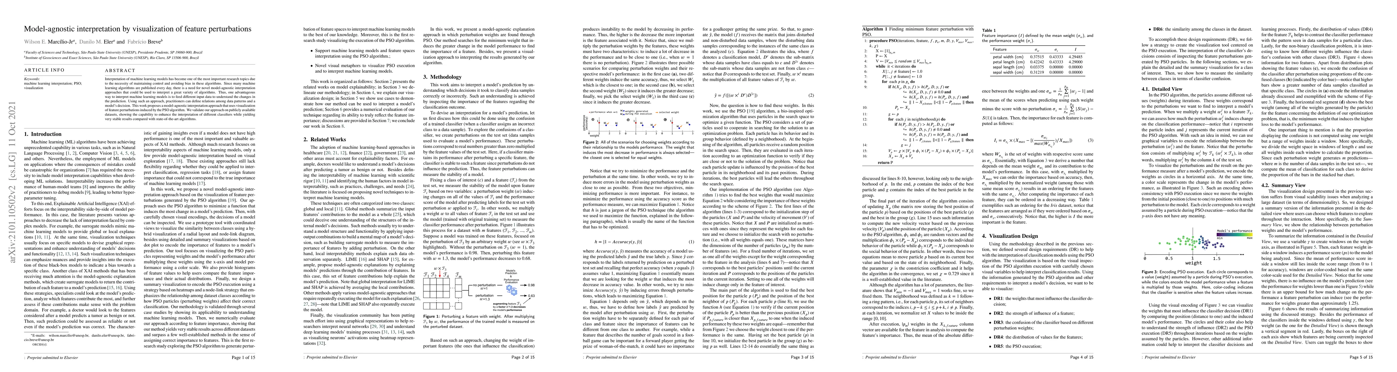 This paper presents a model-agnostic interpretation method that visualizes feature perturbations using the PSO algorithm to understand model predictions. The approach is validated on public datasets, demonstrating its effectiveness in interpreting various classifiers and outperforming state-of-the-art algorithms.