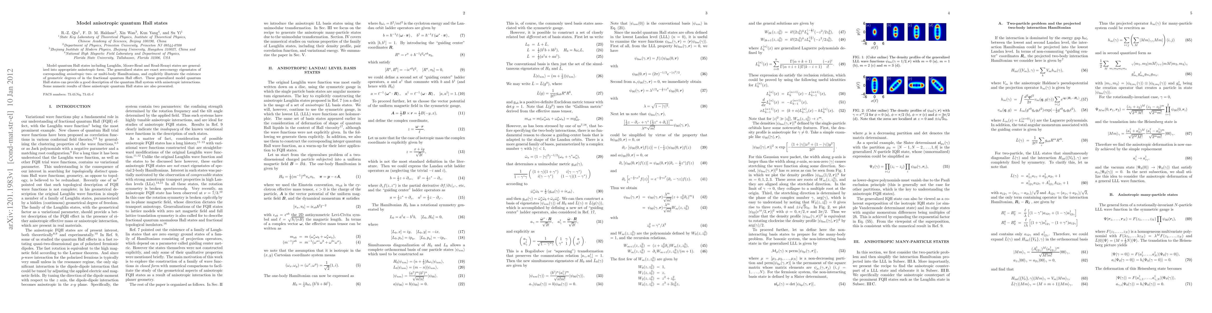 The paper generalizes model quantum Hall states into anisotropic forms, showing these states as exact zero-energy eigenstates of corresponding anisotropic Hamiltonians. The findings illustrate geometric degrees in the fractional quantum Hall effect and provide a good description for systems with anisotropic interactions.