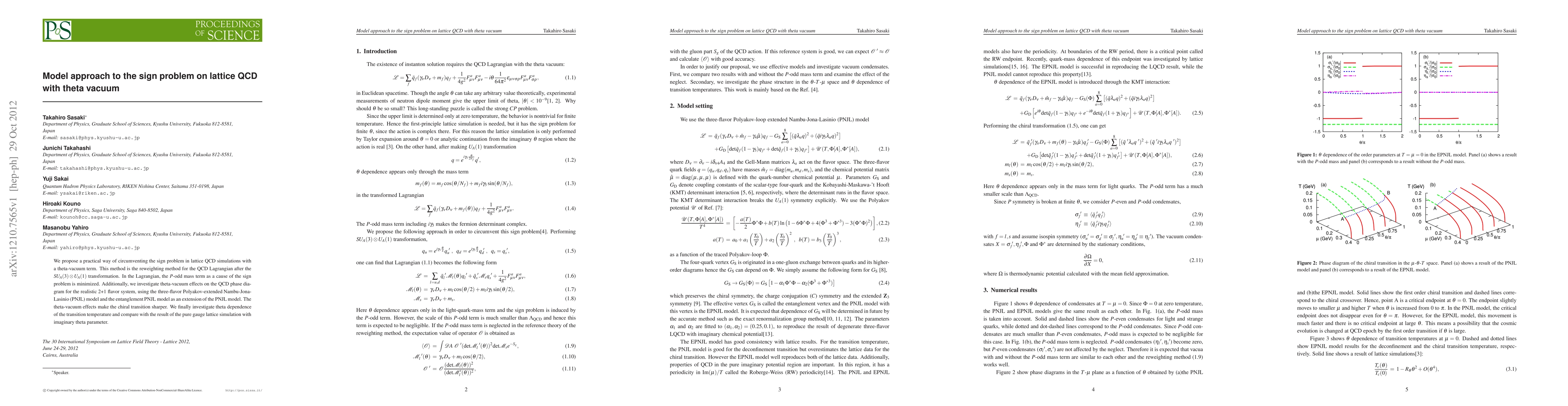 We propose a practical way of circumventing the sign problem in lattice QCD simulations with a theta-vacuum term. This method is the reweighting method for the QCD Lagrangian after the chiral transformation. In the Lagrangian, the P-odd mass term as a cause of the sign problem is minimized. Additionally, we investigate theta-vacuum effects on the QCD phase diagram for the realistic 2+1 flavor system, using the three-flavor Polyakov-extended Nambu-Jona-Lasinio (PNJL) model and the entanglement PNJL model as an extension of the PNJL model. The theta-vacuum effects make the chiral transition sharper. We finally investigate theta dependence of the transition temperature and compare with the result of the pure gauge lattice simulation with imaginary theta parameter.