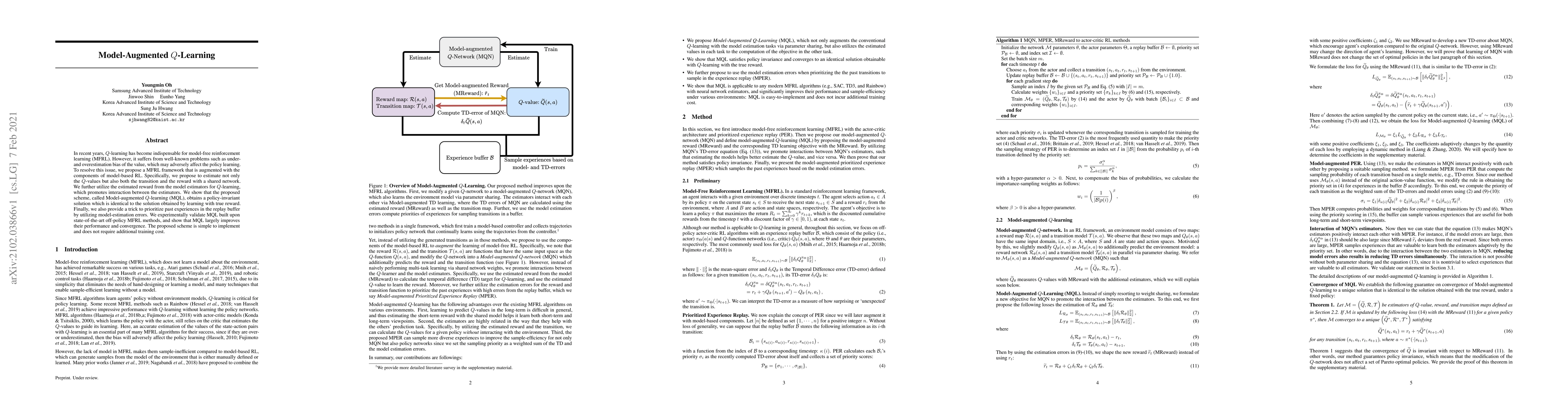 A new reinforcement learning method called Model-Augmented Q-learning (MQL) improves on traditional Q-learning by estimating both transitions and rewards with a shared network, resulting in more accurate policy learning and improved performance in experiments.
