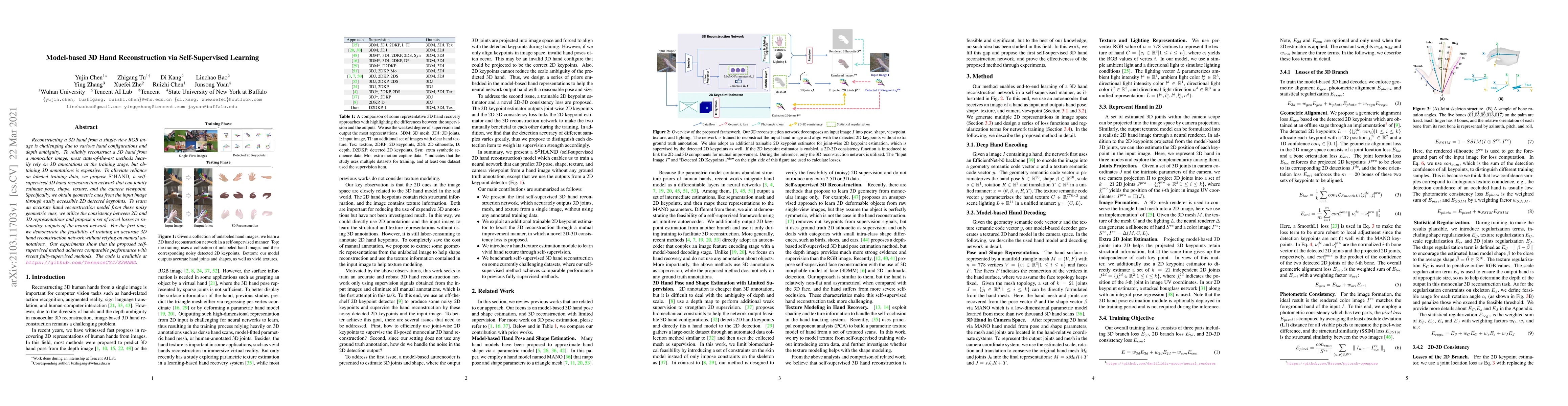 The paper proposes S2HAND, a self-supervised network for 3D hand reconstruction from single-view RGB images, eliminating the need for expensive 3D annotations. It leverages 2D keypoints and consistency between 2D and 3D representations to achieve comparable performance to fully-supervised methods with less supervision.