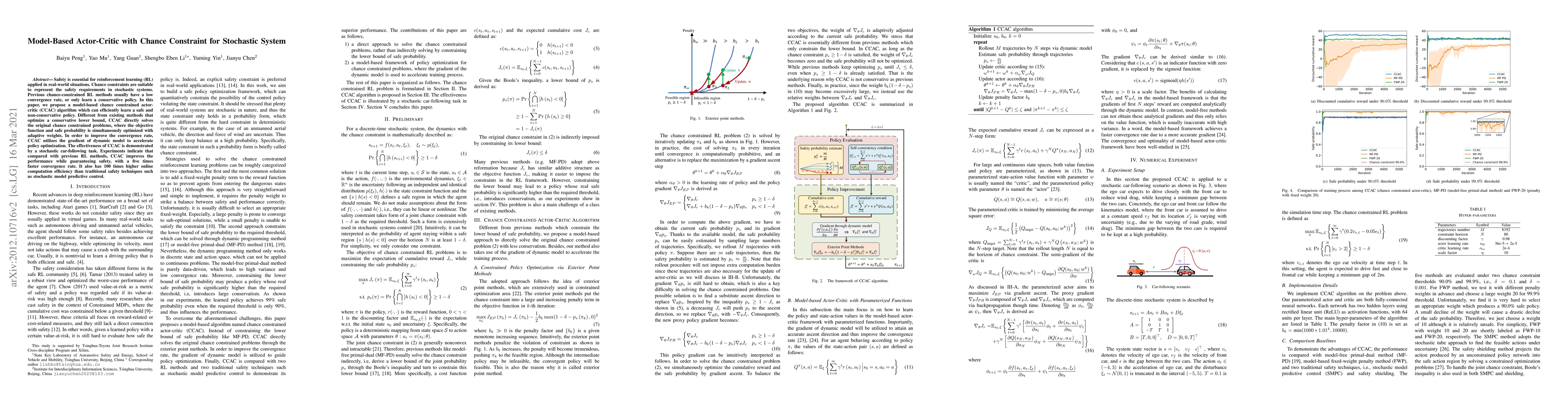 This paper proposes a model-based chance-constrained actor-critic (CCAC) algorithm to improve the convergence rate and efficiency of safety-critical reinforcement learning in stochastic systems. The CCAC method directly optimizes the chance constraints and achieves a safe, non-conservative policy with a significantly faster convergence rate and higher computational efficiency compared to traditional safety techniques.