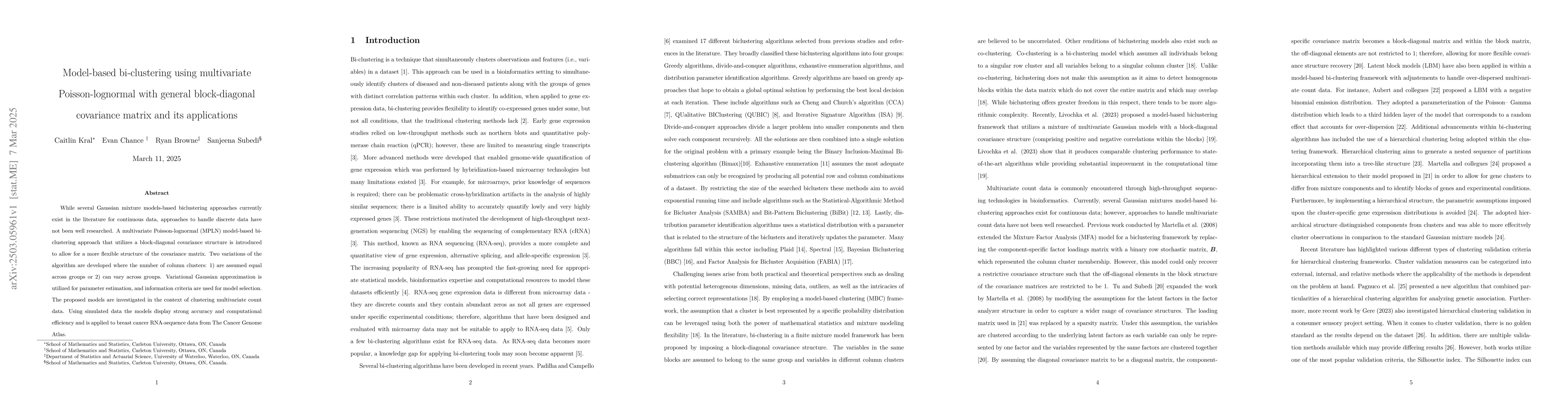 This work is novel as it is the first to use a block-diagonal covariance structure in bi-clustering literature and provides a flexible and accurate method for clustering multivariate count data.