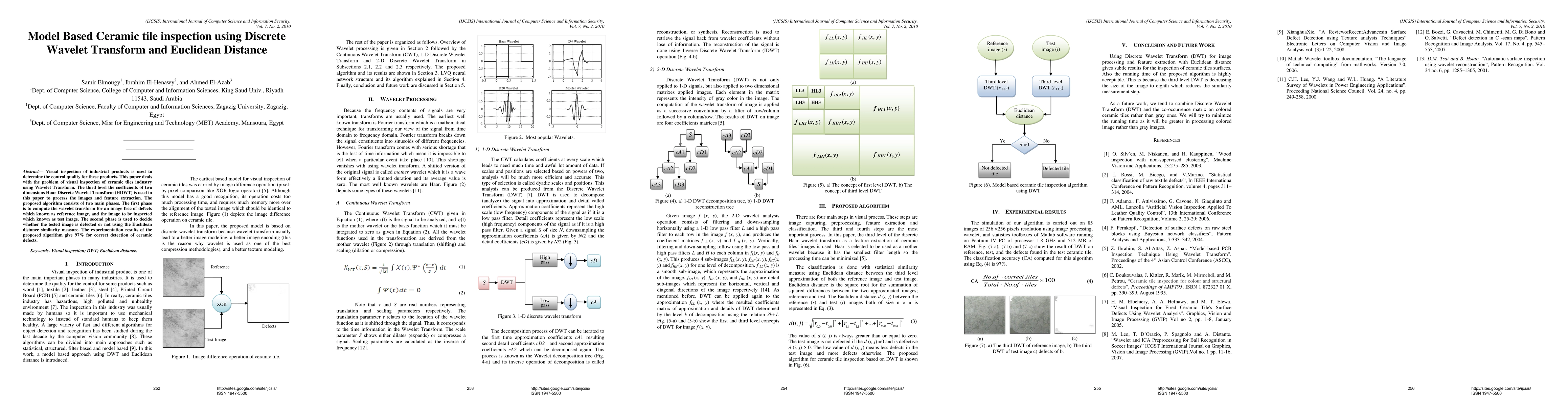 This paper proposes a model for ceramic tile inspection using Haar Discrete Wavelet Transform for image processing and feature extraction, followed by Euclidean distance for defect detection, achieving 97% accuracy in defect identification.