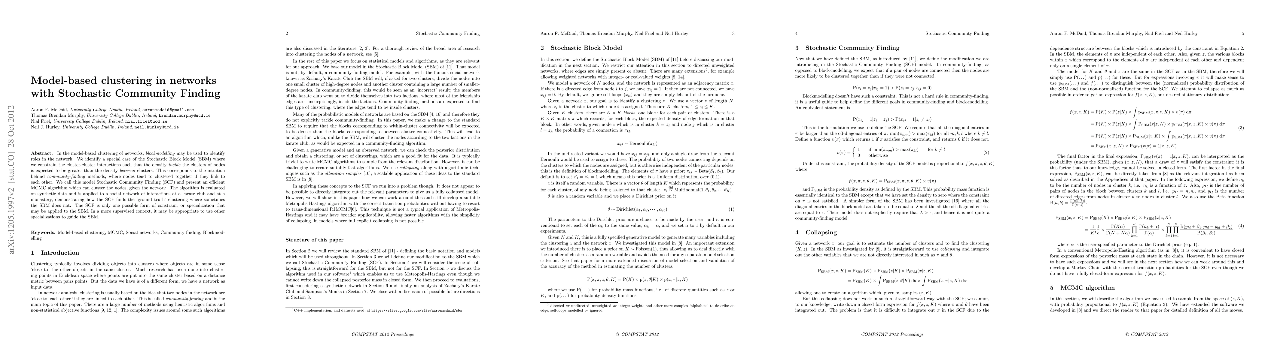In the model-based clustering of networks, blockmodelling may be used to identify roles in the network. We identify a special case of the Stochastic Block Model (SBM) where we constrain the cluster-cluster interactions such that the density inside the clusters of nodes is expected to be greater than the density between clusters. This corresponds to the intuition behind community-finding methods, where nodes tend to clustered together if they link to each other. We call this model Stochastic Community Finding (SCF) and present an efficient MCMC algorithm which can cluster the nodes, given the network. The algorithm is evaluated on synthetic data and is applied to a social network of interactions at a karate club and at a monastery, demonstrating how the SCF finds the 'ground truth' clustering where sometimes the SBM does not. The SCF is only one possible form of constraint or specialization that may be applied to the SBM. In a more supervised context, it may be appropriate to use other specializations to guide the SBM.