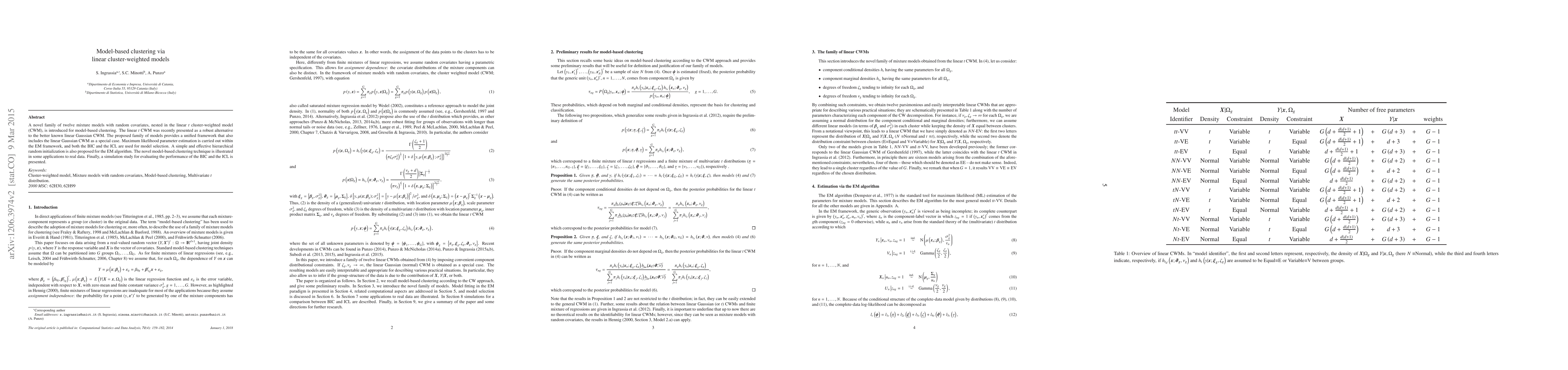 A novel family of twelve mixture models with random covariates, nested in the linear $t$ cluster-weighted model (CWM), is introduced for model-based clustering. The linear $t$ CWM was recently presented as a robust alternative to the better known linear Gaussian CWM. The proposed family of models provides a unified framework that also includes the linear Gaussian CWM as a special case. Maximum likelihood parameter estimation is carried out within the EM framework, and both the BIC and the ICL are used for model selection. A simple and effective hierarchical random initialization is also proposed for the EM algorithm. The novel model-based clustering technique is illustrated in some applications to real data. Finally, a simulation study for evaluating the performance of the BIC and the ICL is presented.