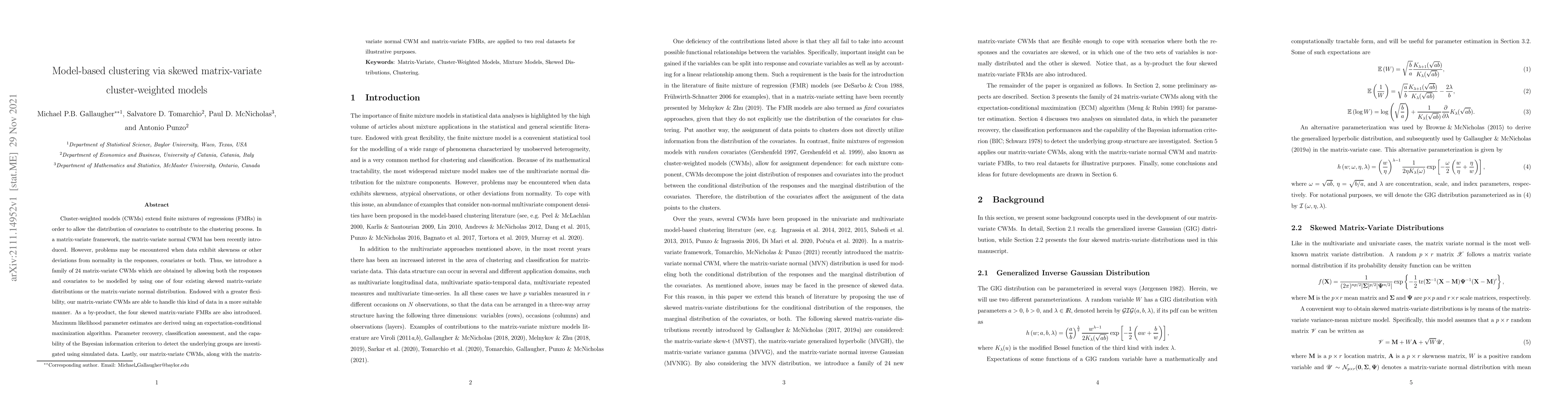 The paper proposes a family of 24 matrix-variate cluster-weighted models that allow skewed matrix-variate distributions for both responses and covariates, enhancing flexibility to handle non-normal data. The models are evaluated through parameter recovery, classification assessment, and Bayesian information criterion performance on simulated data and applied to real datasets.
