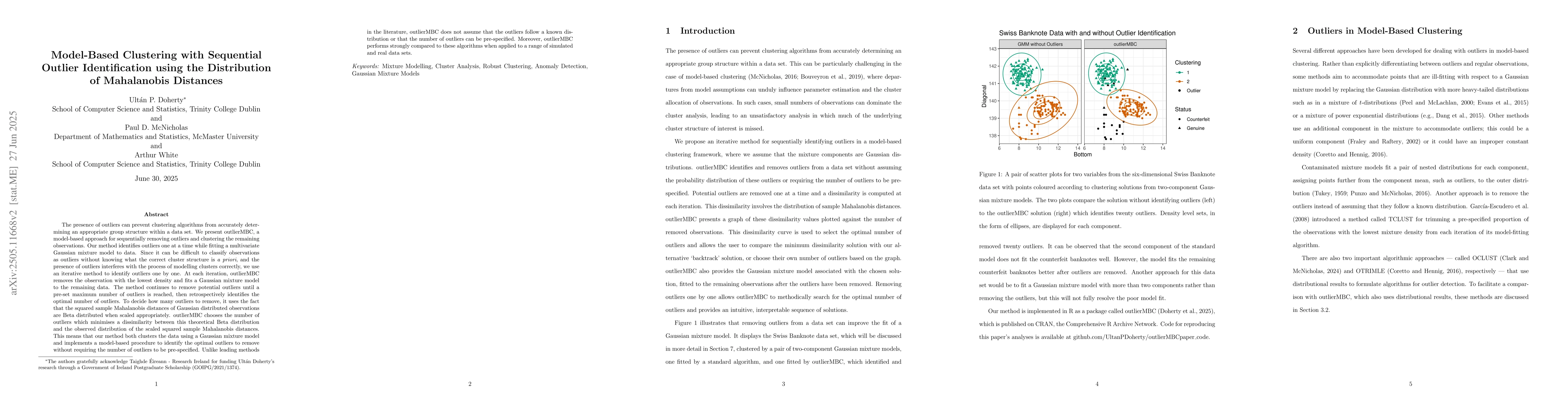 The research introduces outlierMBC, a model-based clustering method that sequentially identifies and removes outliers using Mahalanobis distances and Gaussian mixture models.