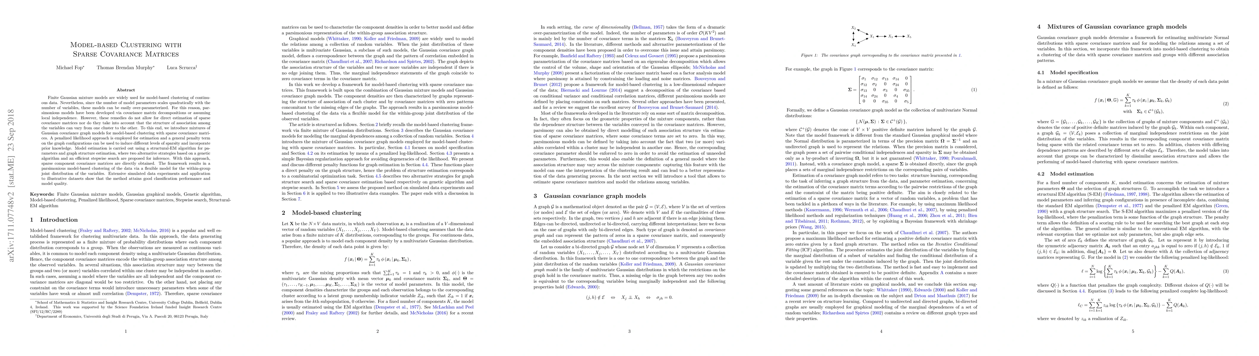 This paper proposes mixtures of Gaussian covariance graph models for model-based clustering, employing a penalized likelihood approach to estimate sparse covariance matrices. The structural-EM algorithm with genetic and stepwise search strategies is used for inference, achieving parsimonious clustering with flexible within-group variable distributions.