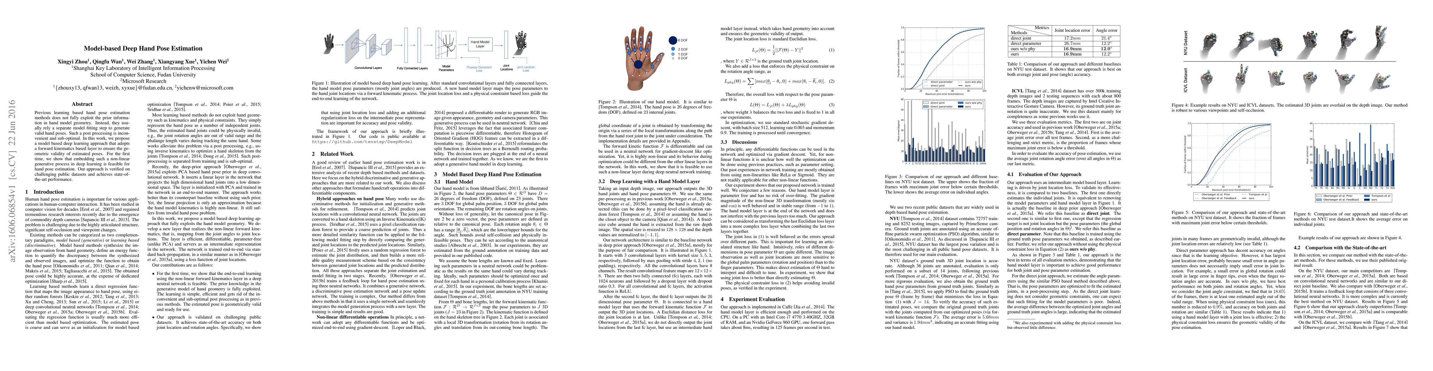 Researchers proposed a model-based deep learning approach to estimate hand pose with geometric validity without separate post-processing steps, achieving state-of-the-art performance on challenging datasets.