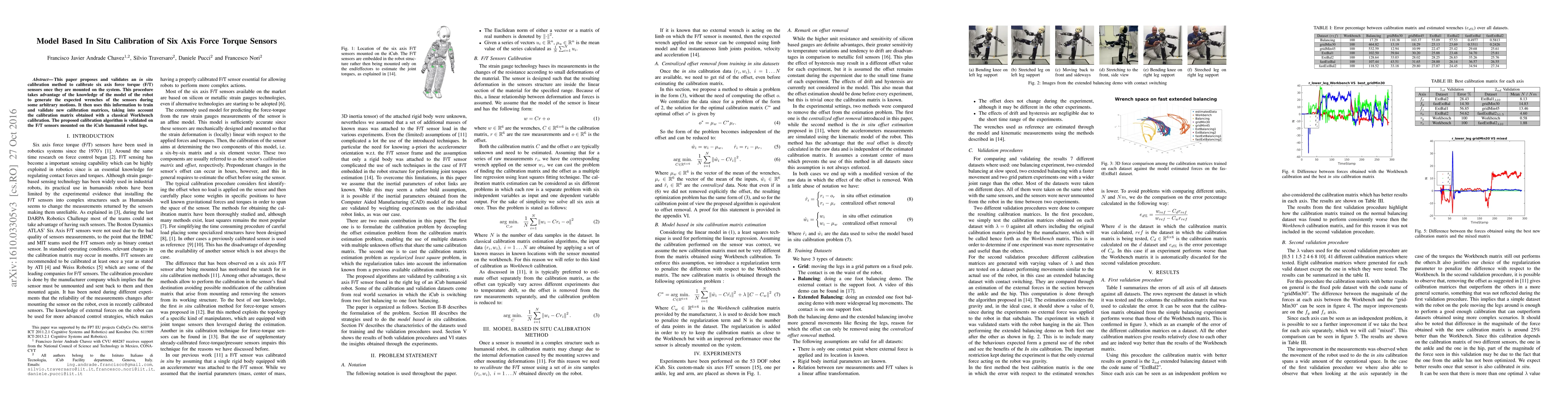 This paper presents a model-based in situ calibration method for six-axis force torque sensors, leveraging the robot's model to generate expected sensor outputs during arbitrary motions, and validates the approach using sensors on the iCub humanoid robot. The method refines calibration matrices by incorporating classical Workbench calibration data.