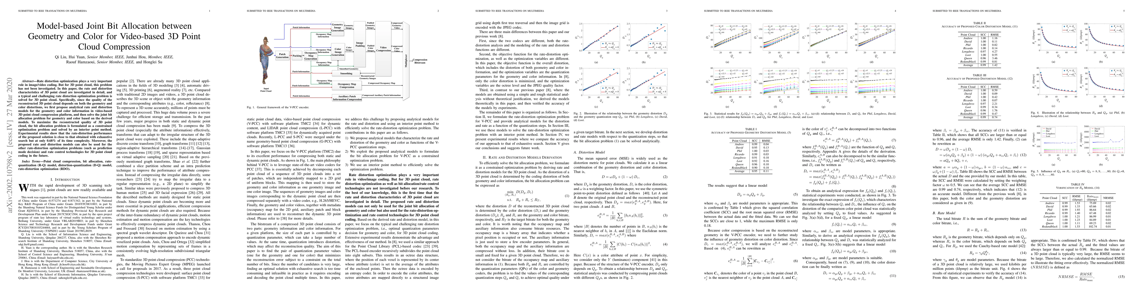 This paper investigates rate distortion optimization for 3D point cloud compression, proposing analytical models for geometry and color information. The joint bit allocation problem is solved using an interior point method to maximize reconstructed quality, achieving near-exhaustive search performance with significantly reduced complexity.