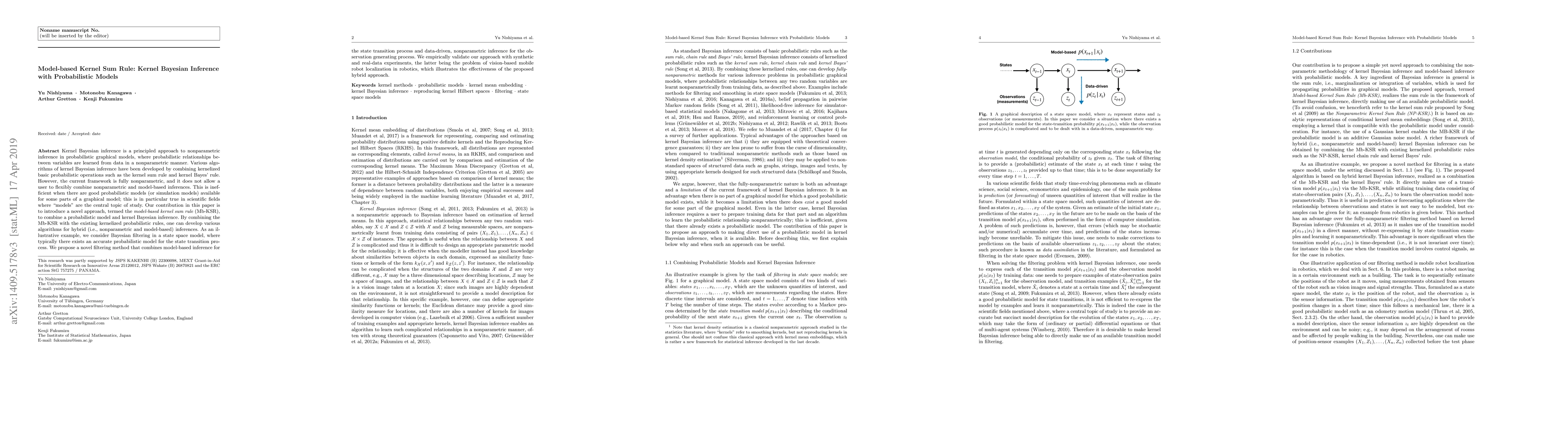 This paper introduces a novel "model-based kernel sum rule" (Mb-KSR) to combine probabilistic models with kernel Bayesian inference, enabling efficient hybrid nonparametric and model-based inferences. The proposed method is validated through synthetic and real-world experiments, specifically in the context of vision-based mobile robot localization.
