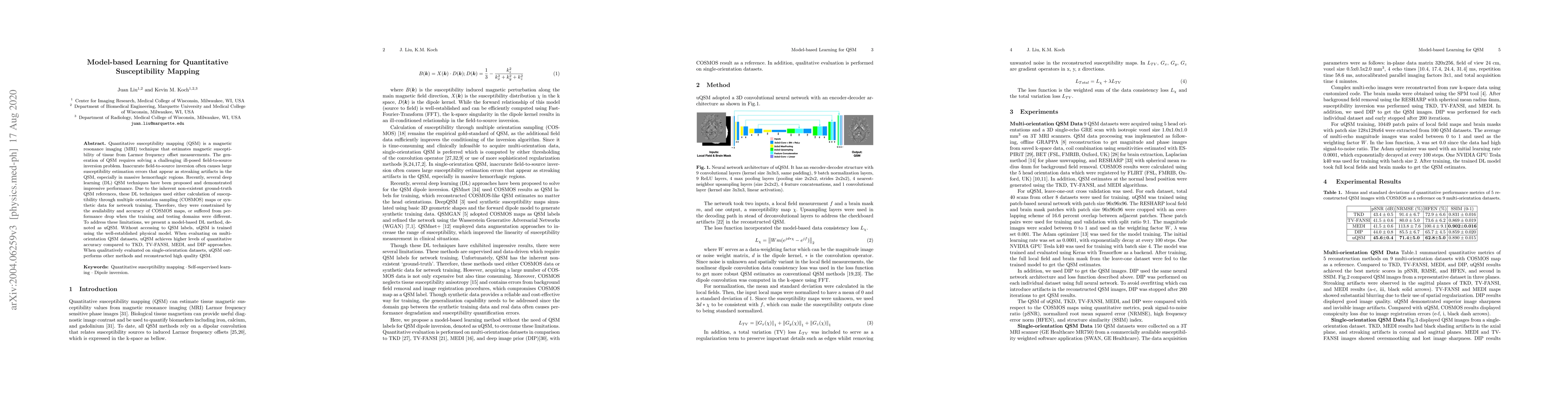 This paper proposes a model-based deep learning method, uQSM, for Quantitative Susceptibility Mapping (QSM) in MRI, which leverages a well-established physical model for training without relying on ground-truth QSM references. uQSM demonstrates superior quantitative accuracy and higher quality reconstructions compared to conventional methods.
