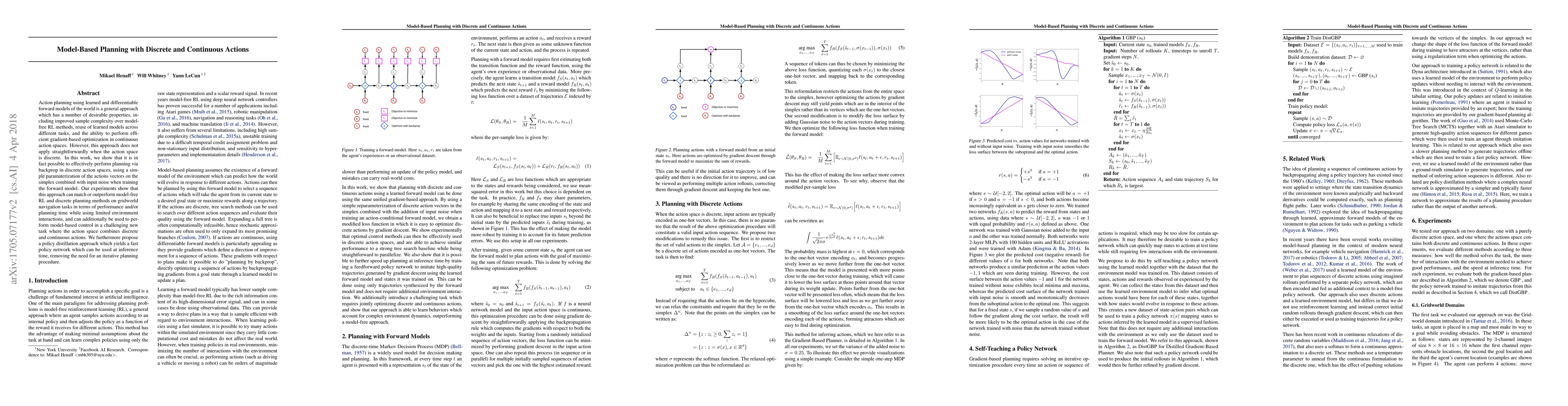 This paper explores model-based planning that combines discrete and continuous actions using differentiable forward models. It demonstrates effective planning via backprop in discrete action spaces, achieving competitive performance with limited environment interactions, and introduces a policy distillation method for fast inference.