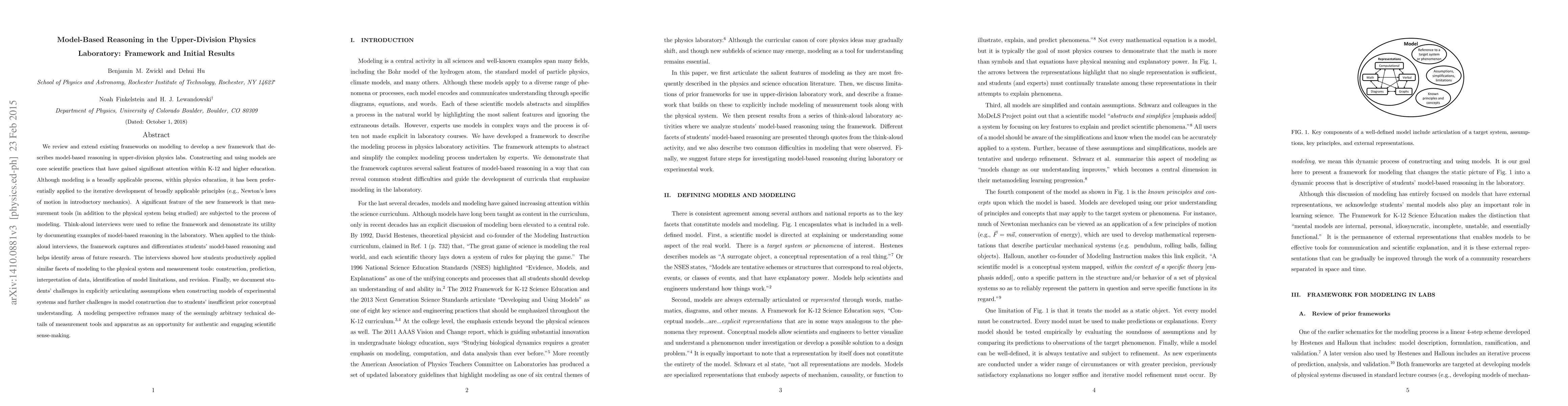 This paper develops a new framework for model-based reasoning in upper-division physics labs, emphasizing the modeling of both physical systems and measurement tools. Think-aloud interviews reveal students' effective application of modeling processes and highlight challenges in articulating assumptions and prior conceptual understanding.