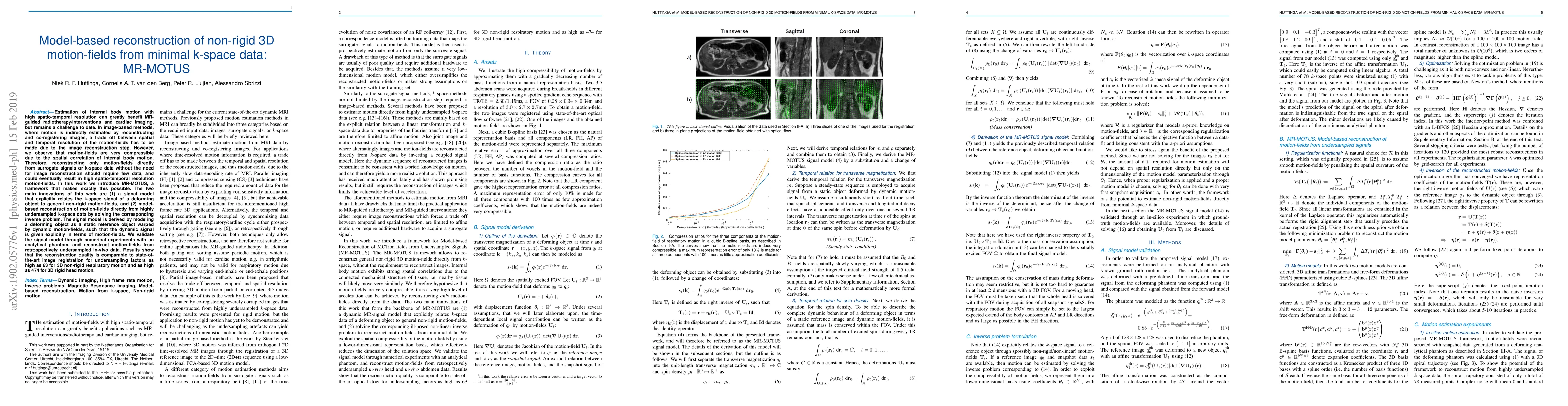 This paper introduces MR-MOTUS, a framework for reconstructing high spatio-temporal resolution non-rigid 3D motion-fields directly from minimal k-space data, bypassing the need for image reconstruction. The key innovations include a signal model linking k-space signals to non-rigid motion-fields and a model-based reconstruction method for undersampled k-space data, achieving results comparable to state-of-the-art image registration.