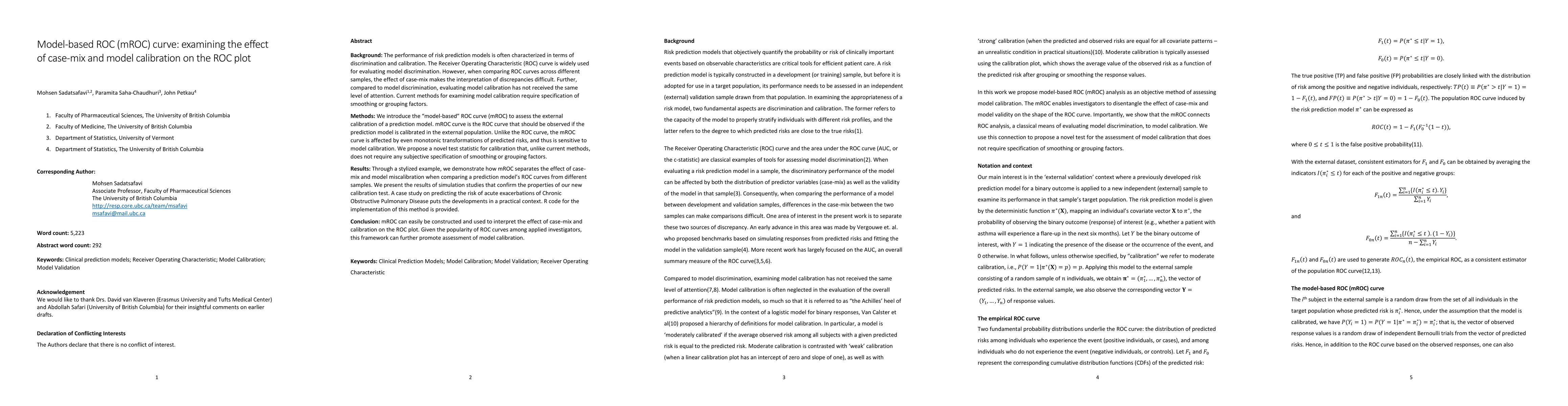 The paper introduces the model-based ROC (mROC) curve to assess model calibration in risk prediction models, showing that it can visually evaluate the effect of case-mix and model miscalibration. A novel statistical test for calibration is proposed, supported by simulations, and a case study demonstrates its practical application.