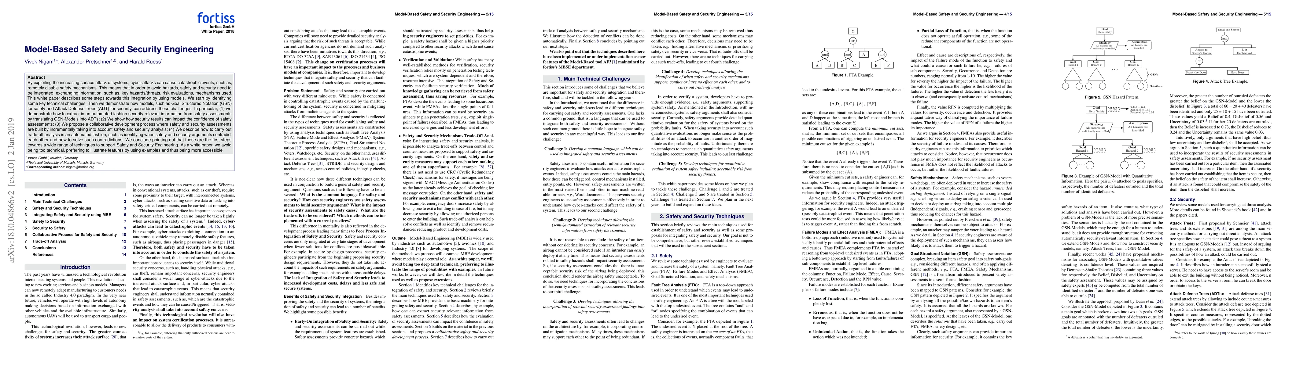 By exploiting the increasing surface attack of systems, cyber-attacks can cause catastrophic events, such as, remotely disable safety mechanisms. This means that in order to avoid hazards, safety and security need to be integrated, exchanging information, such as, key hazards/threats, risk evaluations, mechanisms used. This white paper describes some steps towards this integration by using models. We start by identifying some key technical challenges. Then we demonstrate how models, such as Goal Structured Notation (GSN) for safety and Attack Defense Trees (ADT) for security, can address these challenges. In particular, (1) we demonstrate how to extract in an automated fashion security relevant information from safety assessments by translating GSN-Models into ADTs; (2) We show how security results can impact the confidence of safety assessments; (3) We propose a collaborative development process where safety and security assessments are built by incrementally taking into account safety and security analysis; (4) We describe how to carry out trade-off analysis in an automated fashion, such as identifying when safety and security arguments contradict each other and how to solve such contradictions. We conclude pointing out that these are the first steps towards a wide range of techniques to support Safety and Security Engineering. As a white paper, we avoid being too technical, preferring to illustrate features by using examples and thus being more accessible.
