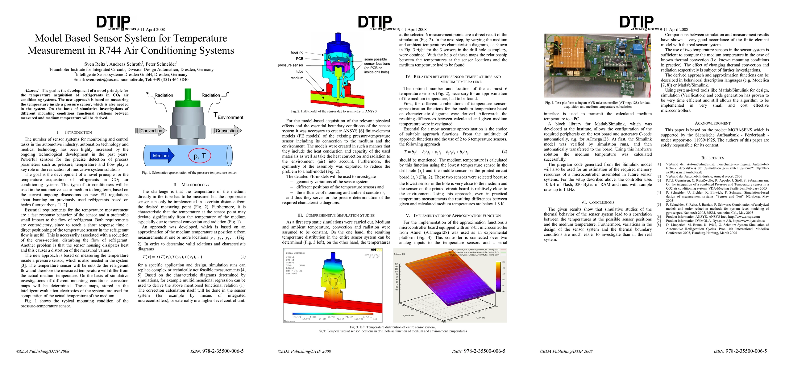 The goal is the development of a novel principle for the temperature acquisition of refrigerants in CO2 air conditioning systems. The new approach is based on measuring the temperature inside a pressure sensor, which is also needed in the system. On the basis of simulative investigations of different mounting conditions functional relations between measured and medium temperature will be derived.