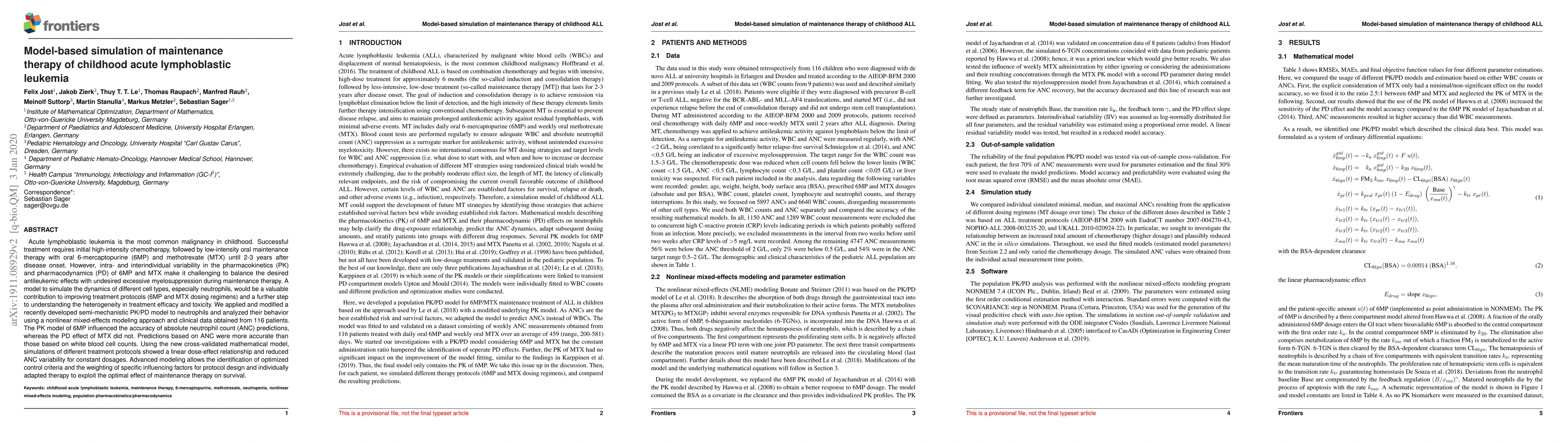 Researchers developed a model to simulate the dynamics of neutrophils in childhood acute lymphoblastic leukemia patients during maintenance therapy, showing improved accuracy with absolute neutrophil count predictions and optimized dosing regimens.