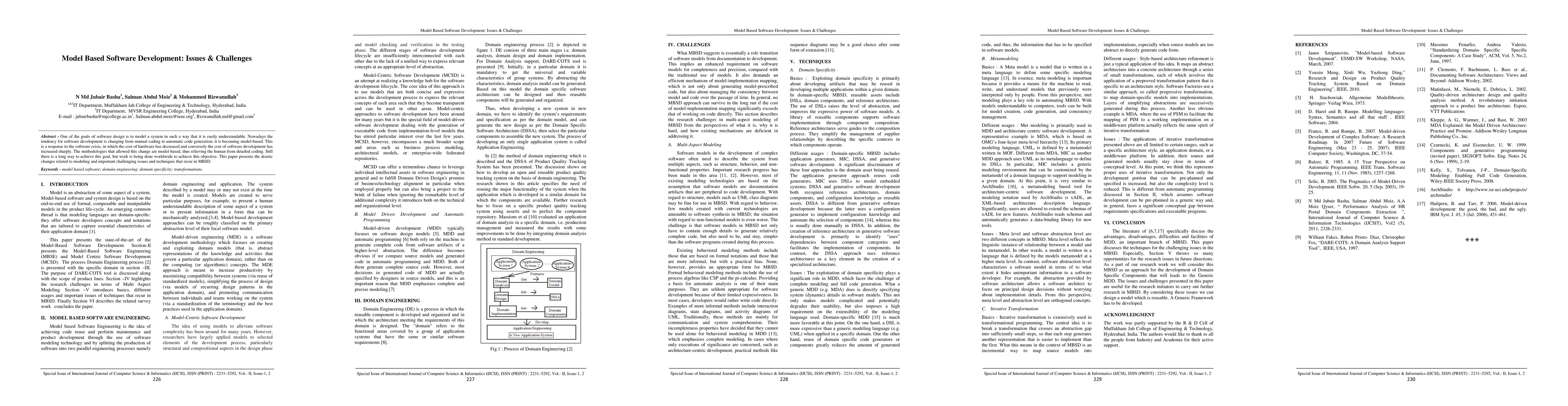 One of the goals of software design is to model a system in such a way that it is easily understandable. Nowadays the tendency for software development is changing from manual coding to automatic code generation; it is becoming model-based. This is a response to the software crisis, in which the cost of hardware has decreased and conversely the cost of software development has increased sharply. The methodologies that allowed this change are model-based, thus relieving the human from detailed coding. Still there is a long way to achieve this goal, but work is being done worldwide to achieve this objective. This paper presents the drastic changes related to modeling and important challenging issues and techniques that recur in MBSD.