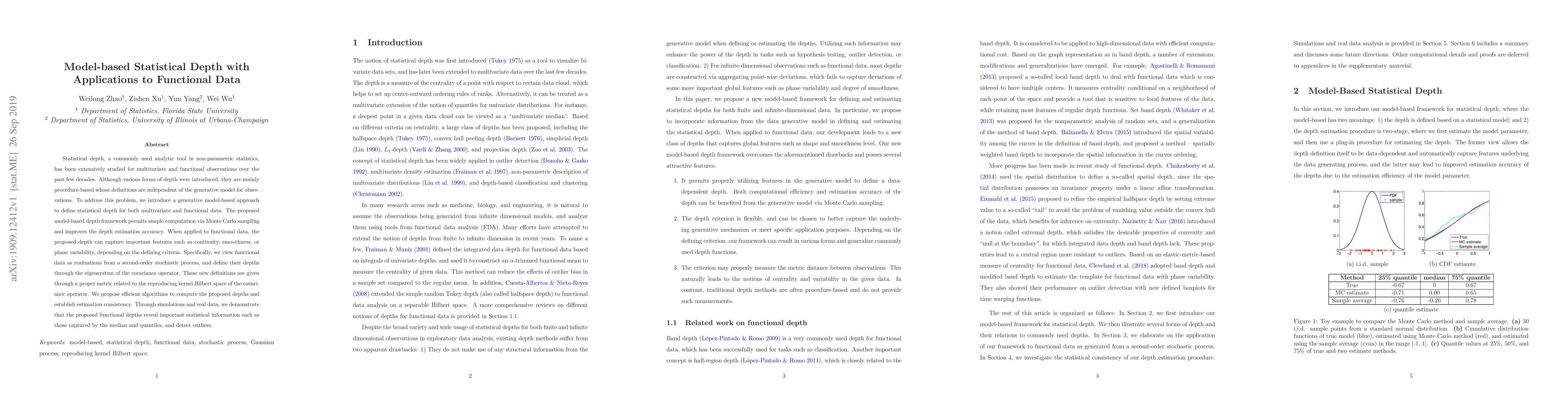 This paper introduces a generative model-based statistical depth framework for multivariate and functional data, enhancing depth estimation accuracy via Monte Carlo sampling. The proposed method captures features like continuity and smoothness for functional data through the eigensystem of the covariance operator, demonstrating improved statistical information and outlier detection.