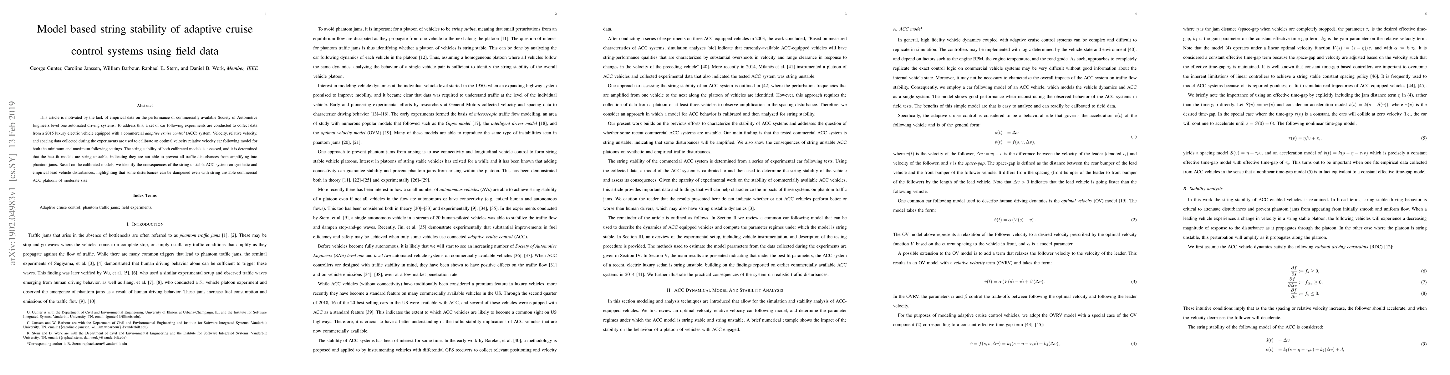 A study using field data from a luxury electric vehicle equipped with adaptive cruise control found that commercially available systems can experience string instability, allowing some disturbances to amplify into phantom jams. The results highlight the limitations of current ACC systems in preventing traffic disturbances.