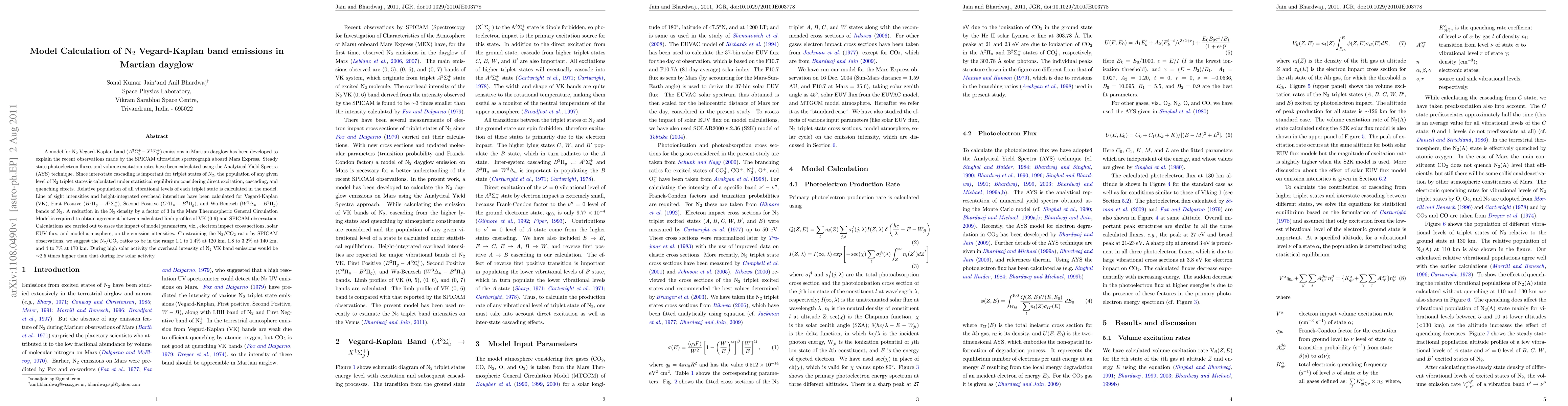 This paper develops a model to calculate N2 Vegard-Kaplan band emissions in Martian dayglow, explaining recent SPICAM observations. It finds a required reduction in N2 density to match model and observation, and suggests N2/CO2 ratios based on SPICAM data, noting higher emissions during high solar activity.