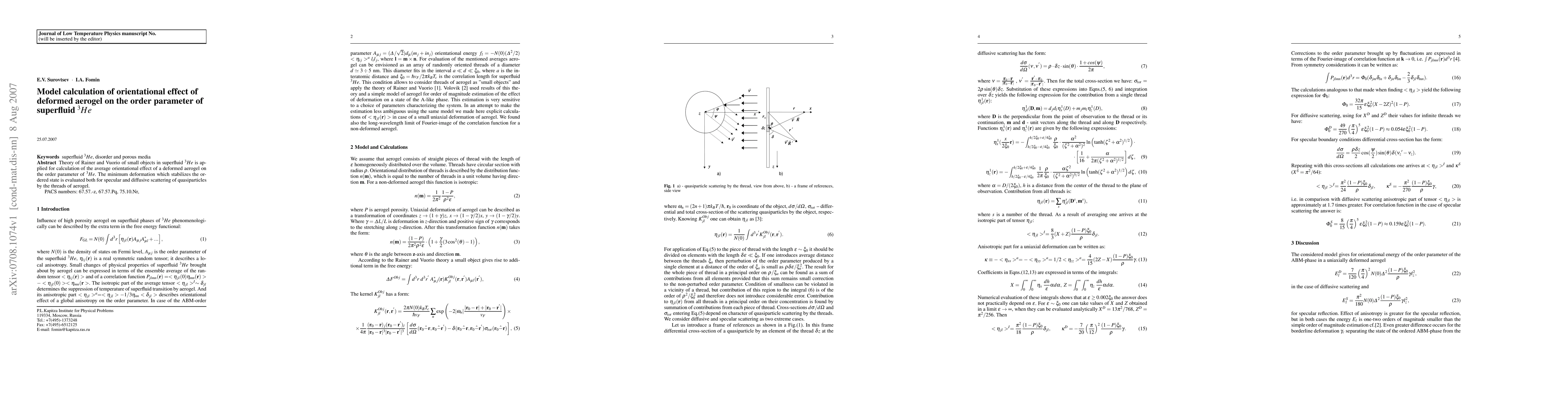 Theory of Rainer and Vuorio of small objects in superfluid ^3He is applied for calculation of the average orientational effect of a deformed aerogel on the order parameter of 3He. The minimum deformation which stabilizes the ordered state is evaluated both for specular and diffusive scattering of quasiparticles by the threads of aerogel.