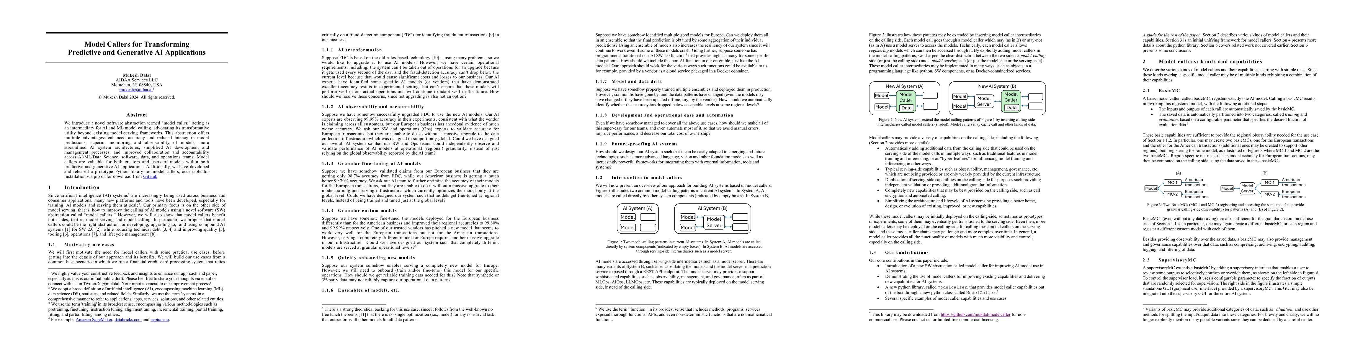 We introduce a novel software abstraction termed "model caller," acting as an intermediary for AI and ML model calling, advocating its transformative utility beyond existing model-serving frameworks. This abstraction offers multiple advantages: enhanced accuracy and reduced latency in model predictions, superior monitoring and observability of models, more streamlined AI system architectures, simplified AI development and management processes, and improved collaboration and accountability across AI/ML/Data Science, software, data, and operations teams. Model callers are valuable for both creators and users of models within both predictive and generative AI applications. Additionally, we have developed and released a prototype Python library for model callers, accessible for installation via pip or for download from GitHub.