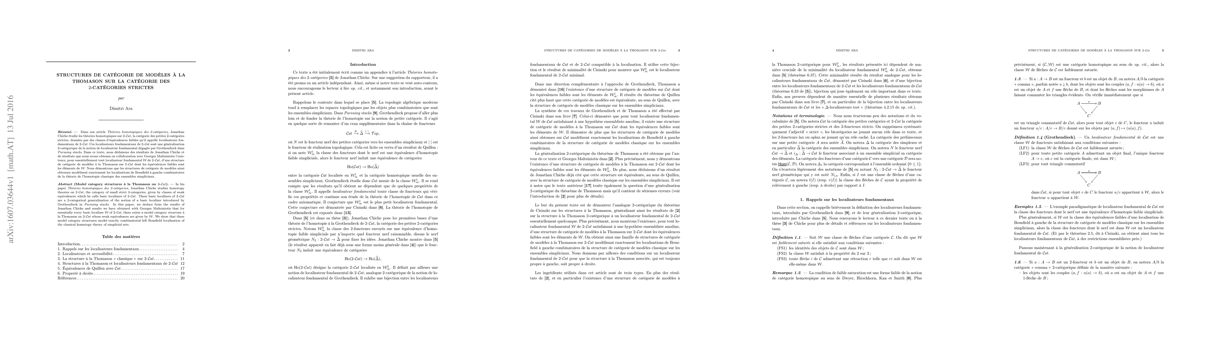 In his paper "Th\'eories homotopiques des 2-cat\'egories", Jonathan Chiche studies homotopy theories on 2-Cat, the category of small strict 2-categories, given by classes of weak equivalences which he calls basic localizers of 2-Cat. These basic localizers of 2-Cat are a 2-categorical generalization of the notion of a basic localizer introduced by Grothendieck in "Pursuing stacks". In this paper, we deduce from the results of Jonathan Chiche and results we have obtained with Georges Maltsiniotis that for essentially every basic localizer W of 2-Cat, there exists a model category structure \`a la Thomason on 2-Cat whose weak equivalences are given by W. We show that these model category structures model exactly combinatorial left Bousfield localization of the classical homotopy theory of simplicial sets.