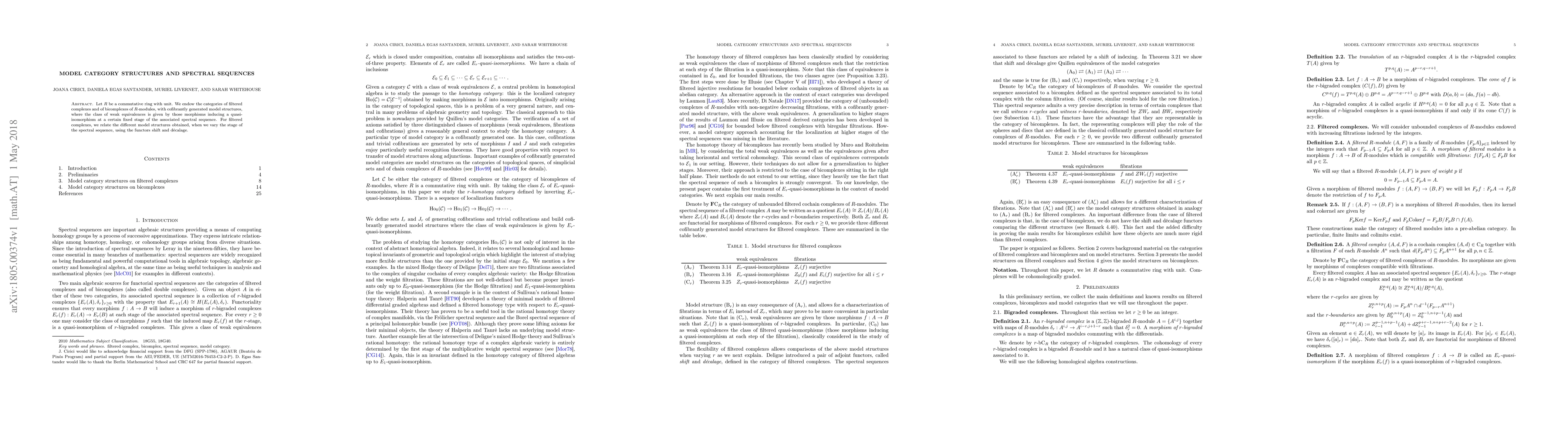 Let k be a commutative ring with unit. We endow the categories of filtered complexes and of bicomplexes of k-modules, with cofibrantly generated model structures, where the class of weak equivalences is given by those morphisms inducing a quasi-isomorphism at a certain fixed stage of the associated spectral sequence. For filtered complexes, we relate the different model structures obtained, when we vary the stage of the spectral sequence, using the functors shift and d\'ecalage.
