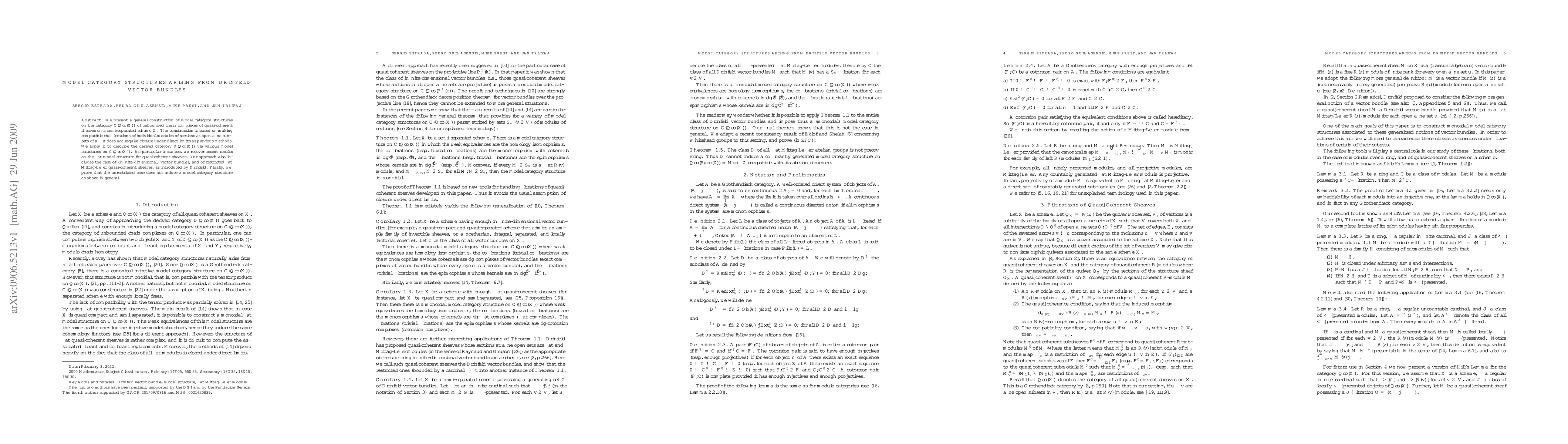 We present a general construction of model category structures on the category $\mathbb{C}(\mathfrak{Qco}(X))$ of unbounded chain complexes of quasi-coherent sheaves on a semi-separated scheme $X$. The construction is based on making compatible the filtrations of individual modules of sections at open affine subsets of $X$. It does not require closure under direct limits as previous methods. We apply it to describe the derived category $\mathbb D (\mathfrak{Qco}(X))$ via various model structures on $\mathbb{C}(\mathgrak{Qco}(X))$. As particular instances, we recover recent results on the flat model structure for quasi-coherent sheaves. Our approach also includes the case of (infinite-dimensional) vector bundles, and of restricted flat Mittag-Leffler quasi-coherent sheaves, as introduced by Drinfeld. Finally, we prove that the unrestricted case does not induce a model category structure as above in general.