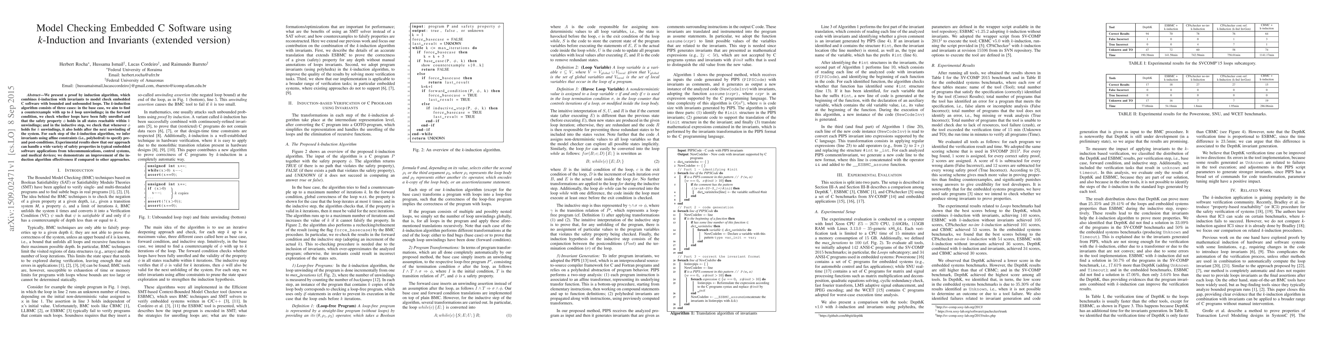 This paper proposes a k-induction algorithm combined with invariants to model check embedded C software, effectively handling both bounded and unbounded loops. The algorithm improves upon existing methods by leveraging affine constraints to infer invariants, demonstrating enhanced effectiveness in verifying safety properties across various embedded applications.
