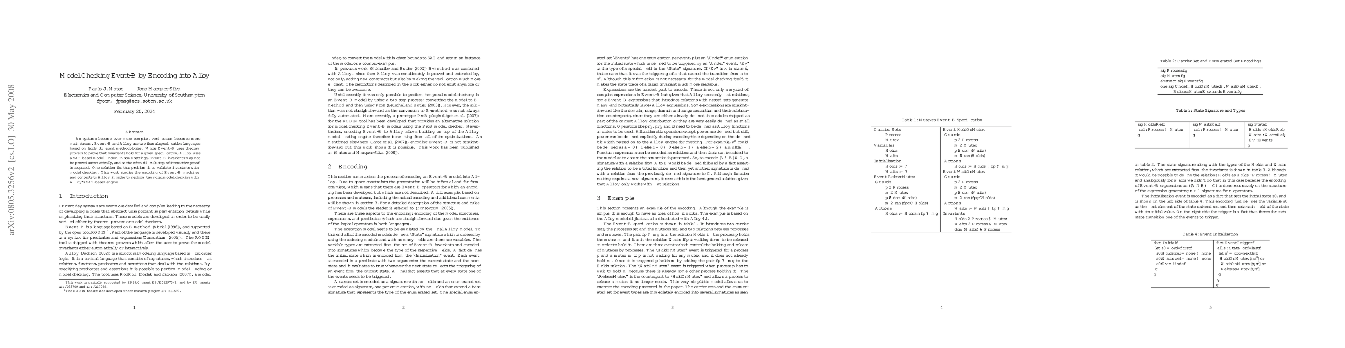 This paper explores the encoding of Event-B specifications into Alloy to leverage Alloy's SAT-based model checker for verifying temporal properties when Event-B's theorem provers fail to automatically prove invariants. This approach aims to bridge the gap between different formal verification methodologies.