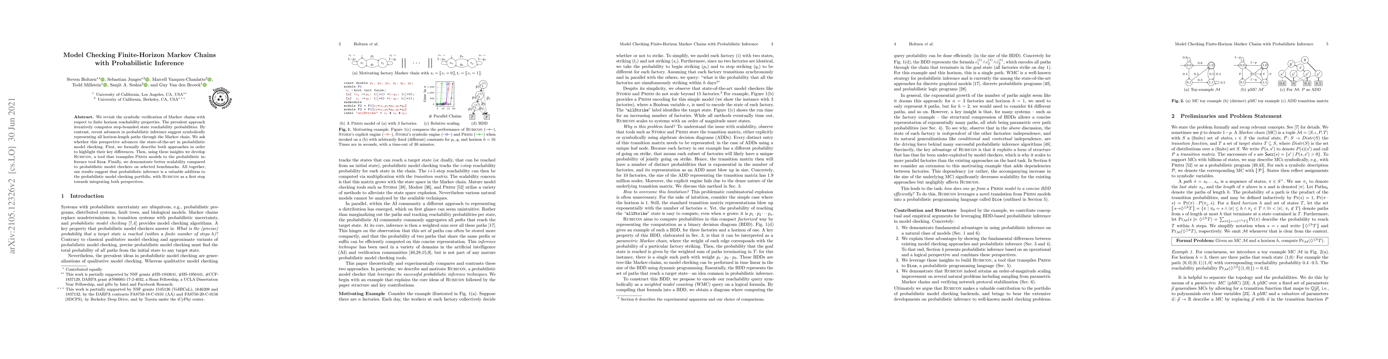 This paper explores the symbolic verification of finite-horizon reachability in Markov chains, comparing traditional step-bounded approaches with probabilistic inference. It introduces Rubicon, a tool that transpiles Prism models to Dice, and demonstrates improved scalability over existing probabilistic model checkers.