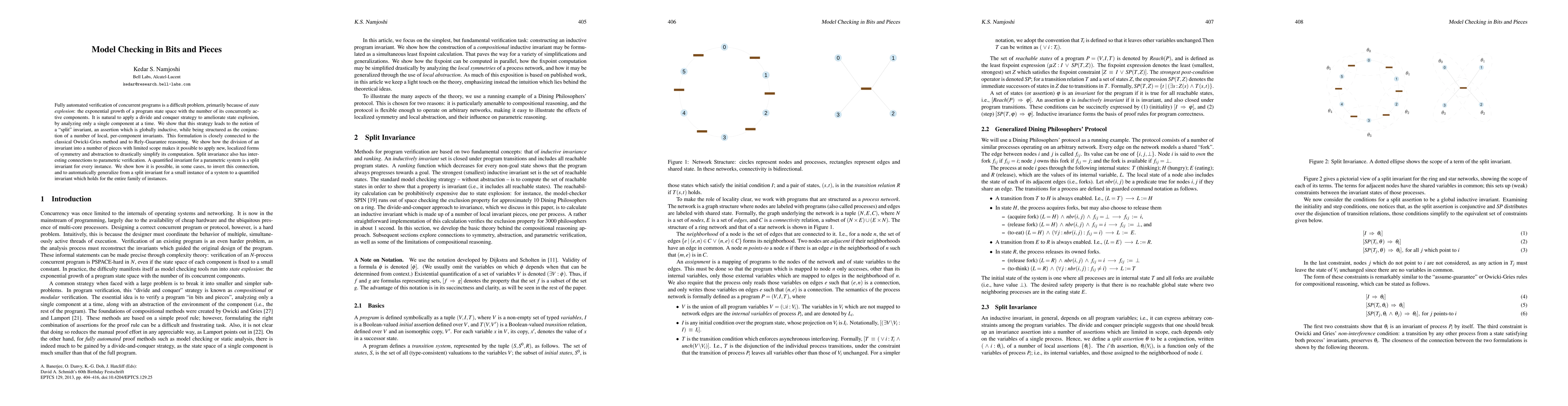 Fully automated verification of concurrent programs is a difficult problem, primarily because of state explosion: the exponential growth of a program state space with the number of its concurrently active components. It is natural to apply a divide and conquer strategy to ameliorate state explosion, by analyzing only a single component at a time. We show that this strategy leads to the notion of a "split" invariant, an assertion which is globally inductive, while being structured as the conjunction of a number of local, per-component invariants. This formulation is closely connected to the classical Owicki-Gries method and to Rely-Guarantee reasoning. We show how the division of an invariant into a number of pieces with limited scope makes it possible to apply new, localized forms of symmetry and abstraction to drastically simplify its computation. Split invariance also has interesting connections to parametric verification. A quantified invariant for a parametric system is a split invariant for every instance. We show how it is possible, in some cases, to invert this connection, and to automatically generalize from a split invariant for a small instance of a system to a quantified invariant which holds for the entire family of instances.